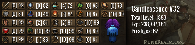 ![]() | Smithing | 9 | 10 | 99 | 59,757,372 |
