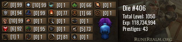 | Woodcutting | 131 | 10 | 99 | 50,408,950 |
