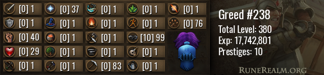 Overall Attack Defence Strength Hitpoints Ranged Prayer Magic Cooking Woodcutting Fletching Fishing Firemaking Crafting Smithing Mining Herblore Agility Thieving Slayer Farming Runecrafting Hunter