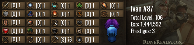 | Skill | Rank | Prestige | Level | Experience | Until Next Level/Maxed | |