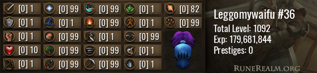 ![]() | Runecrafting | 15 | 0 | 82 | 2,465,200 |