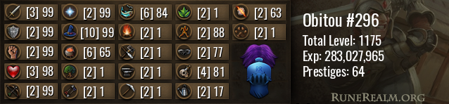 | Runecrafting | 295 | 2 | 63 | 405,989 |
