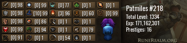 | Woodcutting | 185 | 3 | 94 | 8,496,749 |