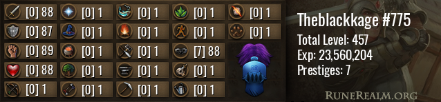 | Skill | Rank | Prestige | Level | Experience | Until Next Level/Maxed | |