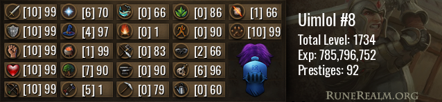 | Woodcutting | 9 | 10 | 99 | 36,139,808 |